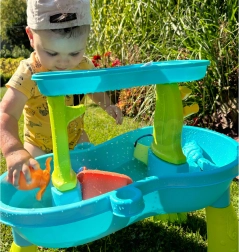 Er enthält verschiedene Texturen und anregende Reize, die Kinder ermutigen, die Welt von Wasser und Sand zu erkunden.