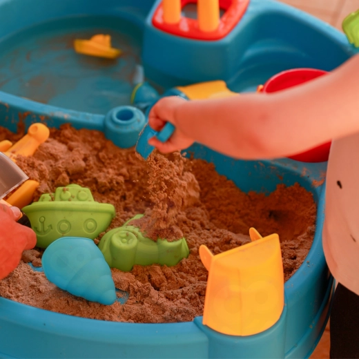 Zwei separate Wannen ermöglichen es, eine mit Wasser und die andere mit Sand zu befüllen. Kinder können Aktivitäten abwechseln, Materialien mischen und verschiedene Texturen ohne großes Chaos entdecken.