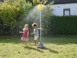 Der Hut des Sprinklers schießt Wasser und kreiert somit eine beeindruckende visuelle Show und sorgt für Erfrischung auch an den heißesten Tagen.