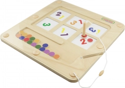 Diese hochwertige MASTERKIDZ-Holztafel mit magnetischem Labyrinth bringt Kindern Zahlen, Mengen und Farben auf spielerische Weise näher. Mit dem beiliegenden magnetischen Stift bewegen Kinder Kügelchen/Chips an die richtigen Positionen gemäß Zahlen und Farben und entwickeln so Auge-Hand-Koordination, Konzentration und Geduld.