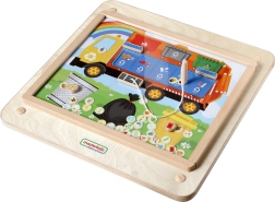 Die interaktive Holztafel von Masterkidz bringt Kindern das Trennen von Abfällen auf spielerische, von der Montessori-Methode inspirierte Weise bei. Mit Hilfe eines magnetischen/steuerbaren „Werkzeugs“ verschiebt das Kind Piktogramme von Abfällen in die farblich passenden Container auf einer Tafel mit Müllsammelfahrzeug. Fördert Feinmotorik, Augen-Hand-Koordination, Konzentration sowie Umweltbewusstsein. Kann im Wandrahmen oder frei auf Tisch bzw. Boden verwendet werden.