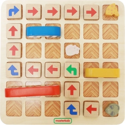 Das hölzerne Logikspiel von Masterkidz führt Kinder spielerisch in die Prinzipien des Programmierens ein. Mit bunten Pfeilen und „Anweisungen“ leiten sie die Maus zum Käse und trainieren dabei logisches Denken, Problemlösen, räumliche Orientierung und Hand-Auge-Koordination. Eine großartige Grundlage für die ersten Schritte ins Programmieren schon im Vorschulalter.