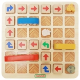 Entdecken Sie den spielerischen Weg in die Welt des Codierens. Das Kind plant ein „Programm“ aus Schritten und Pfeilen, damit die Maus sicher zum Käse gelangt – es muss der Katze und Hindernissen ausweichen und die Regel beachten, dass kein Feld zweimal besucht werden darf und sich die Route nicht kreuzen darf. Das Spiel stärkt Geduld, Konzentration und strategisches Denken.