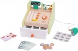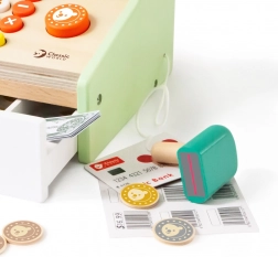 Hergestellt aus hochwertigem Holz mit Fokus auf Detail und Sicherheit. Umweltfreundliche Materialien sind angenehm anzufassen und langlebig für den täglichen Einsatz. Das Set enthält alles Nötige für ein vollständiges Spiel – Geldscheine, Münzen und eine Zahlungskarte.