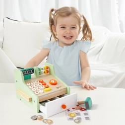 Die stilvolle Holzkasse CLASSIC WORLD verwandelt jede Spielecke in einen kleinen Laden. Sie fördert die Fantasiespiele, sozialen Kompetenzen und die Grundlagen der Mathematik. Im Set enthalten sind Geldscheine, Münzen und eine Zahlungskarte, sodass Kinder Bezahlen, Rechnen und das richtige Herausgeben von Wechselgeld üben können.