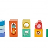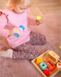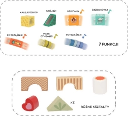 Dieses hochwertige Set enthält vielfältige Formen und Elemente für die Sinneswahrnehmung – Durchsichten, Klang- und bewegliche Details – die Kinder auf natürliche Weise zum Beobachten, Sortieren und Entdecken anleiten. Das Spiel mit den Bausteinen fördert logisches Denken, Problemlösefähigkeiten sowie die Hand-Auge-Koordination.