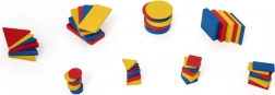Das umfangreiche Set geometrischer Formen in Rot, Gelb und Blau motiviert Kinder zum Legen von Mustern, zum Sortieren sowie zum Erkennen von Formen und Farben.