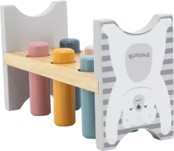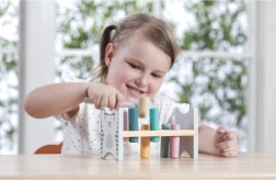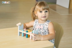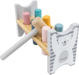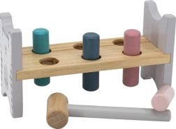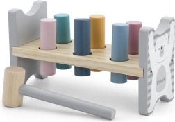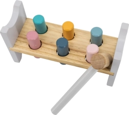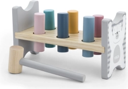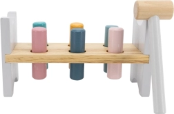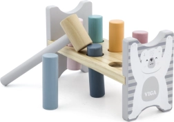 Die bunte Holzbank von VIGA ist so gestaltet, dass sie die Kinder anspricht und die Koordination entwickelt. Die Hauptaufgabe besteht darin, einzelne Stifte durch die Löcher zu hämmern, was die Kinder begeistert und zugleich ihre motorischen Fähigkeiten trainiert.