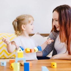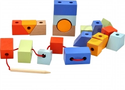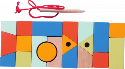 - Einfaches Auffädeln: Kinder können mit dem mitgelieferten Faden und der Nadel die Würfel auffädeln und verschiedene Muster oder Strukturen erstellen.