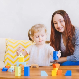 Mit Hilfe der farbigen und formunterscheidbaren Würfel lernen Kinder Formen und Farben zu erkennen.