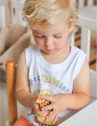 Das Durchfädeln der Schnur durch die Holzteile schult präzise Fingerbewegungen und verbessert die Hand-Auge-Koordination. Spielspaß, der Fähigkeiten ganz natürlich fördert.