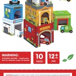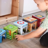 Die WOOPIE GREEN Einsteck-Stadt ist eine kreative Alternative zu klassischen Konstruktionsspielzeugen. Fünf illustrierte Kartonwürfel stellen bekannte Stadtgebäude dar (z. B. Feuerwehr, Schule, Krankenhaus, Polizei) und sind von 1 bis 5 nummeriert – ideal zum Lernen von Zahlen und Größen. Spezielle Öffnungen in den Würfeln ermöglichen das Einsetzen und Aufbewahren der Fahrzeuge, sodass Kinder eigene Geschichten und Szenen aus dem Stadtleben kreieren können.