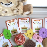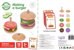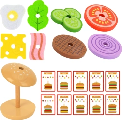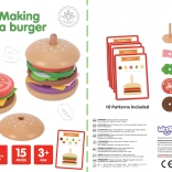 Die WOOPIE GREEN Holz-Burger-Puzzle bringt Kindern ab 3 Jahren eine leckere Portion Lernen und Spaß. Anhand der Anleitungskarten wählen kleine Köche die richtigen Zutaten, vergleichen deren Farbe und Dicke und stapeln sie in der richtigen Reihenfolge. Ebenso leicht können sie eigene „Rezepte“ kreieren, die Kreativität und Vorstellungskraft fördern.