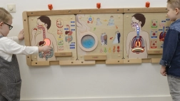 Leuchtelemente zeigen Schritt für Schritt, wie die Nahrung durch den Körper wandert – von dem Mund über den Magen bis in den Darm. Kinder prägen sich den Prozess leicht ein.