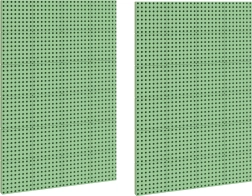 Zwei grüne Paneele mit dichtem Lochraster – ideal für Pixel-Art und Mosaike mit Steckstiften – fördern Kreativität und Feinmotorik.