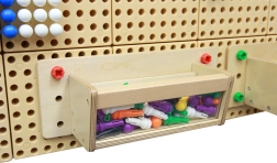Halten Sie die Arbeitsfläche an der STEM-Tafel übersichtlich und organisiert. Die Holzablage mit transparenter Front ermöglicht Kindern und Erwachsenen, benötigte MASTERKIDZ Stifte, Schrauben und Schnüre schnell zu sehen und zu greifen, ohne in entfernten Boxen suchen zu müssen. Sie wird direkt an der Tafel montiert, sodass alles Wichtige stets in Reichweite ist.