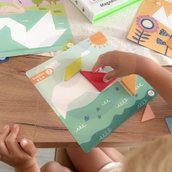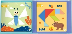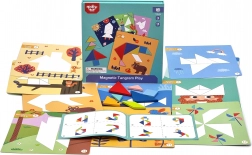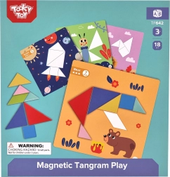 Mit dem magnetischen Tangram von TOOKY TOY legen Kinder Formen und Bilder ganz leicht auf vorbereiteten Unterlagen. Die farbigen geometrischen Teile haften auf der Basis, sodass sie sich zu Hause wie auch unterwegs bequem handhaben lassen. Das Spiel fördert Vorstellungskraft, Konzentration und eigenständiges Lösen von Aufgaben.