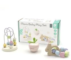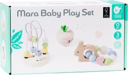 Das pastellfarbene Set motivierender Babyspielzeuge von Classic World wurde entworfen, um Freude zu bereiten und die Sinne Ihres Kindes bereits ab den ersten Tagen zu stimulieren. Dieses Holz-Set enthält mehrere wunderschöne Elemente, die Kindern helfen, Motorik und Konzentration zu entwickeln. Der fröhliche Hase ist eine Rassel mit Perlen, die mit ihrem farbenfrohen Design und melodischen Klängen begeistert. Das Schütteln dieses Spielzeugs weckt die Neugier der Kinder und unterstützt die Entwicklung des Hörsinns. Das Perlenlabyrinth ist ein weiterer Bestandteil des Sets, bei dem Kinder die Perlen drehen und schieben können, wodurch Konzentration und motorische Fähigkeiten gefördert werden. Die Spielzeuge in diesem Set haben eine sanfte Textur und pastellige Farben – angenehm für Kinder und Eltern.