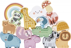 Enthält 15 Holzfiguren einschließlich Tiere, Regenbogen, Wolke und Schwamm für abwechslungsreiches und lehrreiches Spiel.