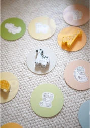 Das Set ermöglicht verschiedene Möglichkeiten des Spielens, einschließlich Paarbildung, Farbenlernen, Tiernamen und dem Bau von Türmen.