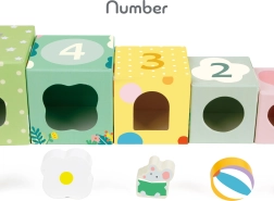 Dieses Set von Würfeln mit Waldthema stellt verschiedene Elemente wie Pflanzen, Tiere und Insekten dar, die Kinder auf den verschiedenen Seiten der Würfel entdecken. Die Würfel können zu einem hohen Turm gestapelt oder zur Formsortierung verwendet werden, was die motorischen Fähigkeiten und das logische Denken der Kinder fördert.
