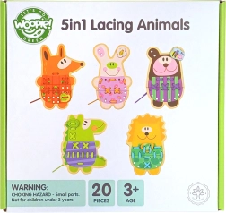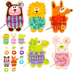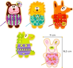 Treten Sie ein in die Welt des kreativen Spielens mit den 5-in-1 Holz-Schnürtieren von Woopie Green. Dieses edukative Set ist ideal für kleine Hände und große Fantasie. Hergestellt aus hochwertigem Holz und mit ungiftigen Farben bemalt, bietet es Sicherheit und eine gesunde Entwicklung für Ihr Kind.