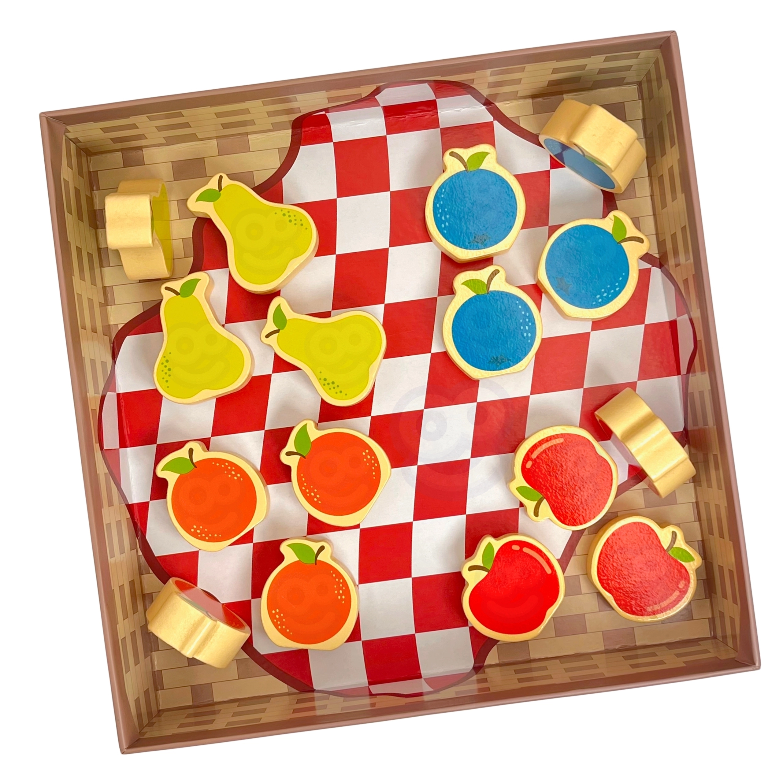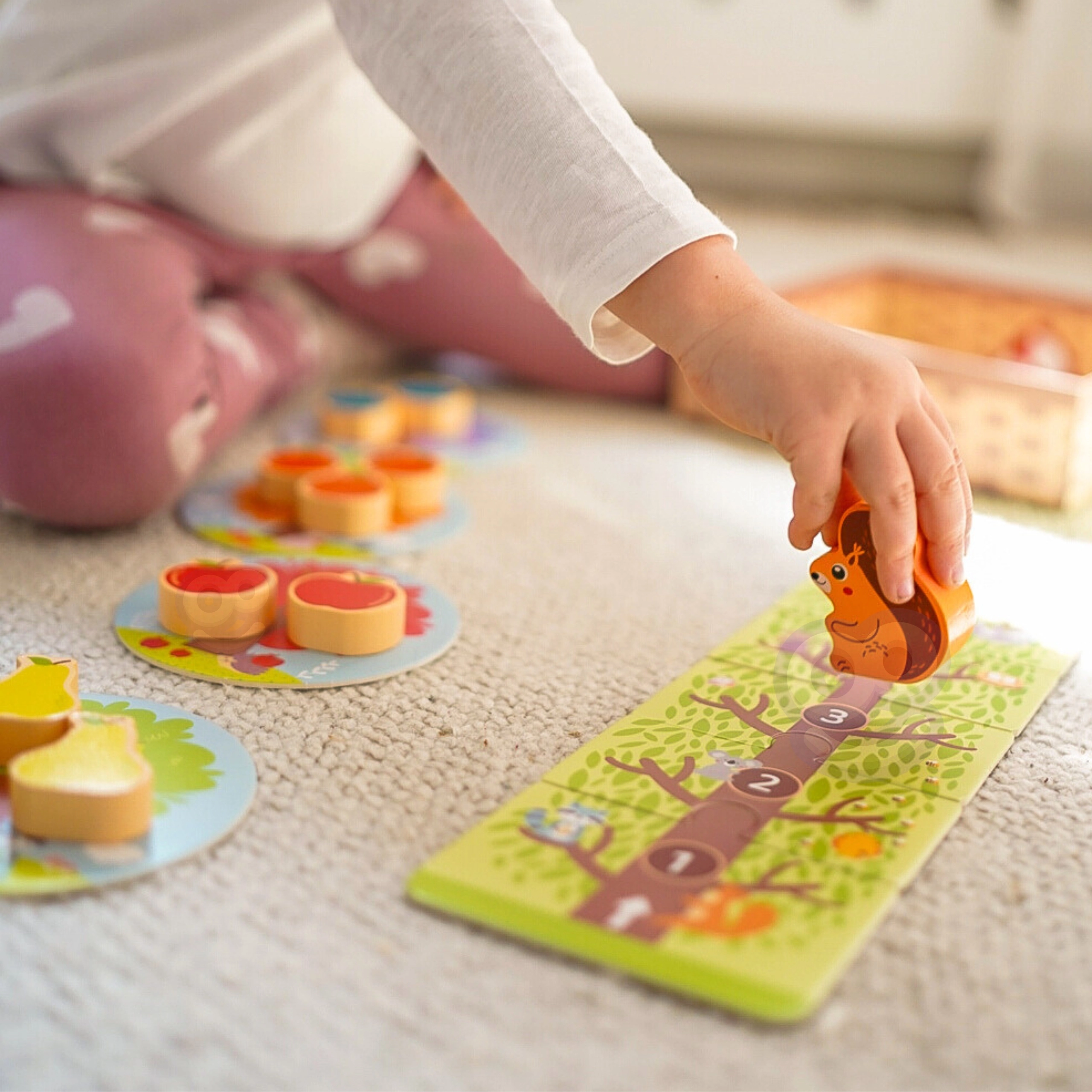 Das Familienspiel EICHHÖRNCHEN IM OBSTGARTEN von WOOPIE GREEN ist das ideale erste Brettspiel für die Kleinsten. Die Kinder würfeln gemeinsam, sammeln buntes Holzobst vom Baum und legen es in den Korb. Wenn das Eichhörnchen gewürfelt wird, kommt eine der gesammelten Früchte zurück – Spannung und Siegesfreude sind garantiert.
