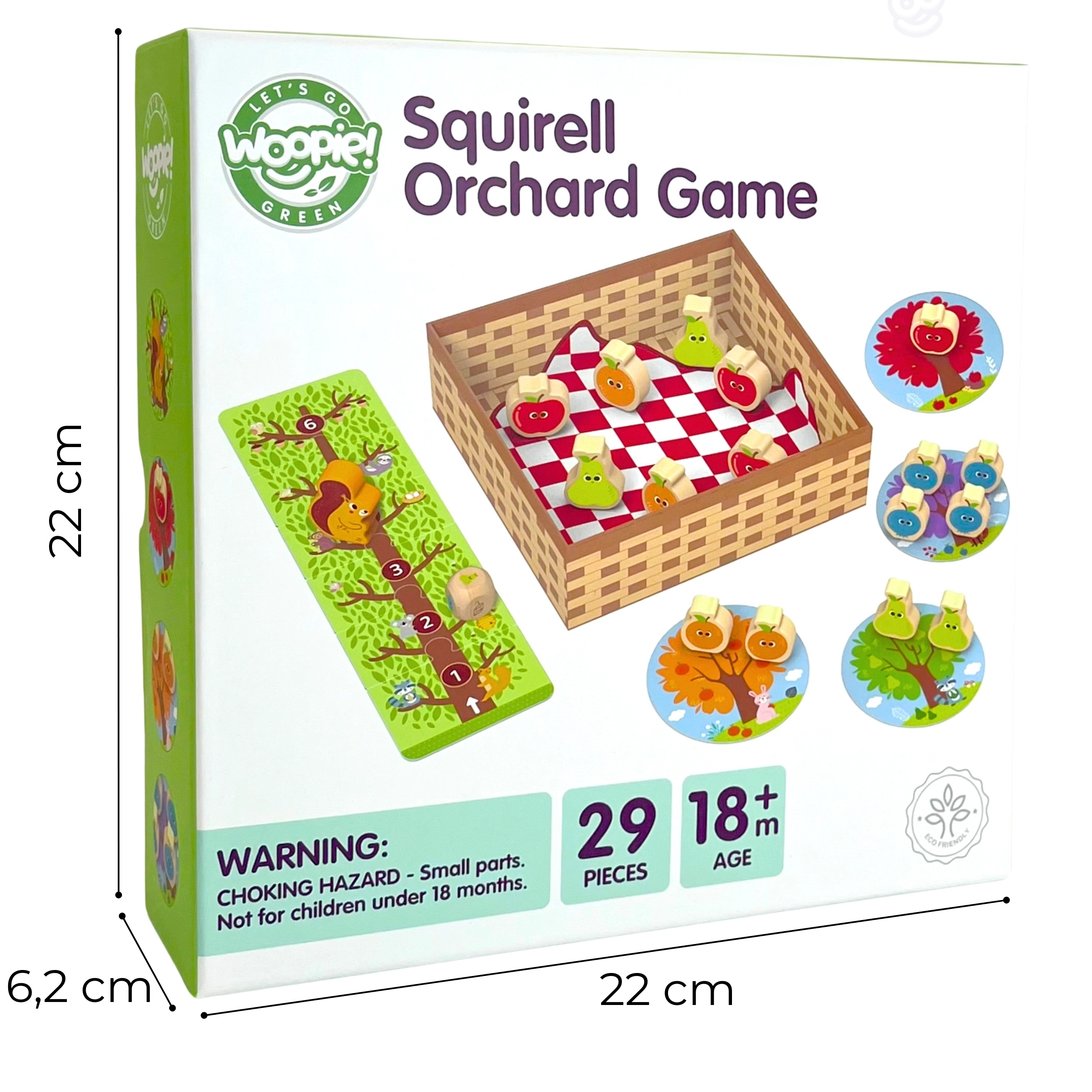 Woopie Green Eichhörnchen im Obstgarten – kooperatives Familienspiel aus Holz