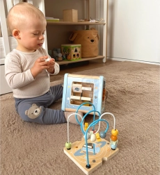 • 5 Aktivitäten in 1: Perlenlabyrinth, Formensortierer, Zahnräder, Schiebeelemente, drehbare Bilder
