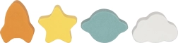 Öffnungen in Form von Planet, Stern, Rakete und Wölkchen helfen Kindern, Formen und Farben zu erkennen. Das Einsetzen der Teile stärkt logisches Denken und Greiffähigkeit.