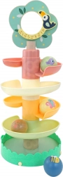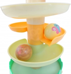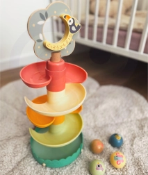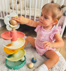 Dank 6 leicht verbindbarer Elemente kann das Kind die Bahn selbst aufbauen und fördert dabei logisches Denken, räumliche Vorstellungskraft und Geduld. Das Spiel unterstützt zudem visuelles Verfolgen und die Feinmotorik der Hände, wenn Kinder die Kugeln greifen, einsetzen und wieder starten.