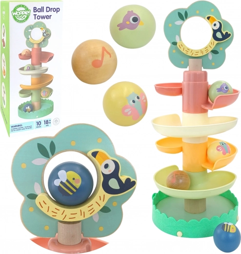 Entdecken Sie spielerisches Lernen mit der WOOPIE GREEN Holz-Kugelbahn. Der Spiral-Turm aus 6 farbigen Elementen und 4 leichten Kugeln mit Tiermotiven fördert Koordinationsfähigkeiten, Feinmotorik und sensorische Wahrnehmung. Einfacher Aufbau, sichere Materialien und angenehme Waldmotive laden Kinder ab 18 Monaten zu selbstständigem, kreativem Spiel ein.