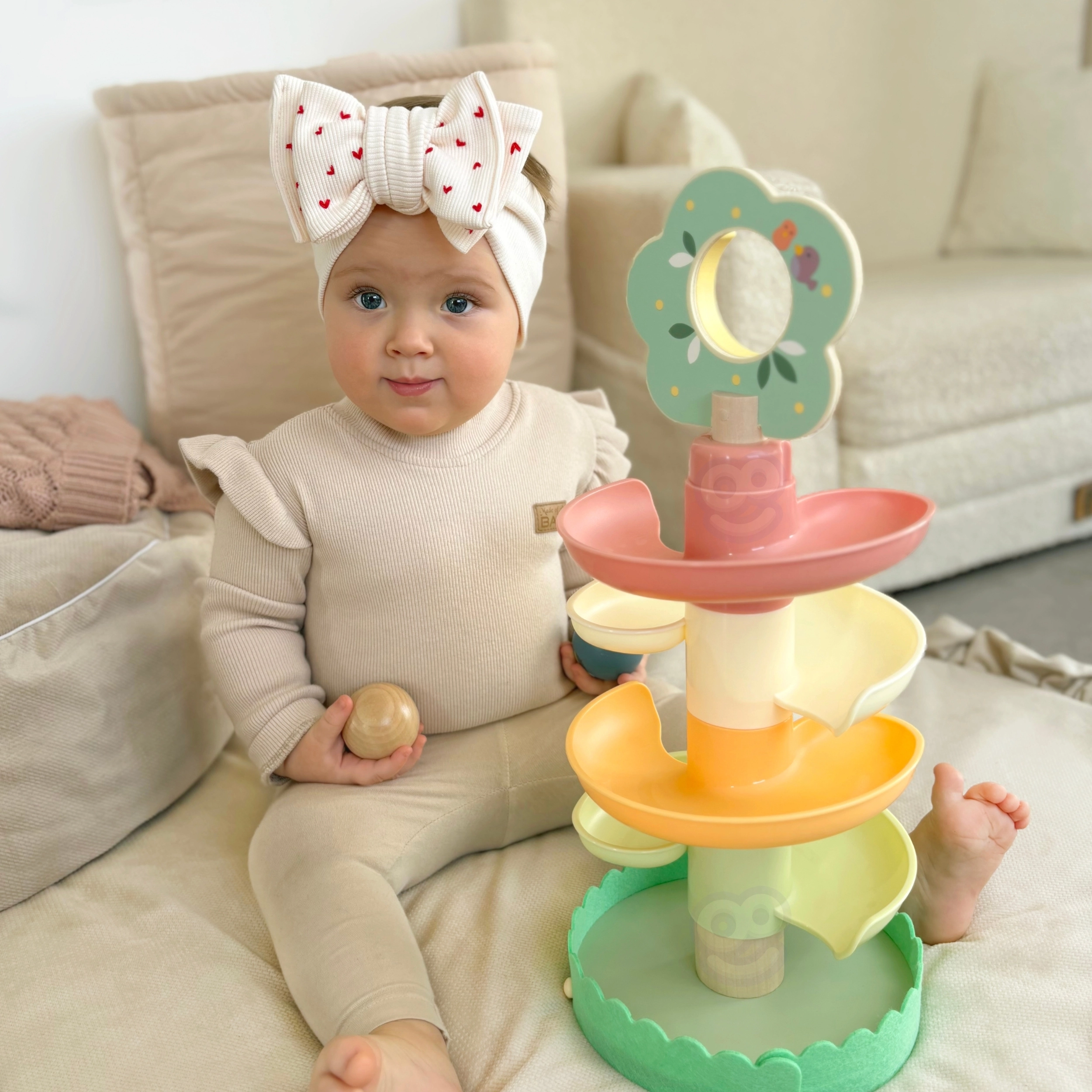 Kinder verfolgen die fließende Bewegung der Kugeln auf den Spiralen, trainieren die Hand-Auge-Koordination und das präzise Greifen der Kugeln.