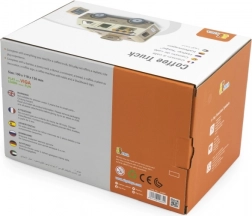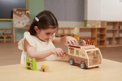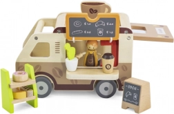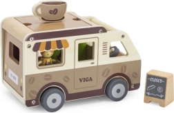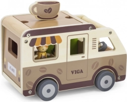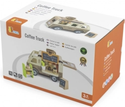 Der hölzerne Café-Truck von VIGA ist ein durchdachtes Spielzeug für kleine Rollenspiel-Fans. Enthalten sind eine Barista-Figur, ein Regal mit Leckereien, Süßigkeiten sowie Zubehör von Kaffee bis zur Menutafel. Dank aufklappbarem Dach, Ausgabefenster und öffnungsfähigem Kofferraum verläuft das Spiel flüssig und ahmt den echten Service am Kunden nach.