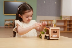 Hochwertiges Massivholz und sichere Oberflächen sorgen für lange Haltbarkeit selbst bei täglichem Spiel. Das Set fördert soziale Interaktion, Kommunikation und Fantasie – Kinder können „Kaffee kochen“, Gebäck verkaufen und eigene Café-Geschichten erfinden.