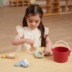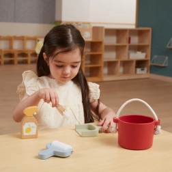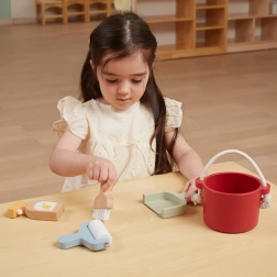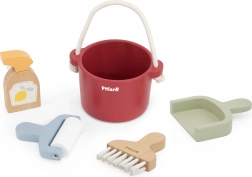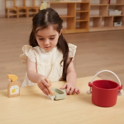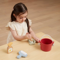 Im Set enthalten sind ein Eimer, ein Handfeger mit Schaufel, eine hölzerne Sprühflasche und eine Fusselrolle – alles, was Kinder für den „großen Hausputz“ brauchen. Fördert Fantasie und Rollenspiel.