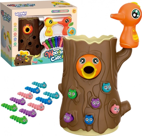 Der Specht mit magnetischem Schnabel fängt Würmchen, die in Öffnungen versteckt sind – dabei trainieren Kinder ihre Feinmotorik und Bewegungskoordination.