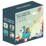 Der Kuh-Lauflernwagen von WOOPIE ist der ideale Helfer beim Laufenlernen. Kinder können ihre Lieblingskuh vor sich herschieben, die während der Fahrt Blasen aus dem Maul pustet. Einfach den Behälter mit Lösung aufschrauben (im Set sind 2 Behälter enthalten) und der Spaß kann beginnen. Für Stimmung sorgen angenehme Melodien, die sich per Knopf ein- und ausschalten lassen.