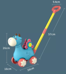 Die verspielte und funktionale Lauflernhilfe in Kuhform motiviert Kinder zu aktiver Bewegung und belohnt sie gleichzeitig mit fröhlichen Melodien und Seifenblasen. Einfach den Behälter mit Lösung (2 Stück im Set) aufschrauben, und beim Gehen treten aus dem Mäulchen der Kuh sanfte Blasen aus. Das Karussell mit den Buchstaben A, B, C regt die erste Begegnung mit dem Alphabet an.