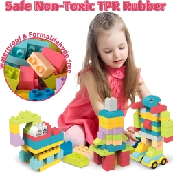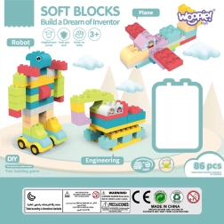 Der WOOPIE-Bausatz enthält 86 Teile, die einfach zu verbinden sind und es Kindern ermöglichen, verschiedene 3D-Strukturen wie Autos, Flugzeuge oder Tiere zu erstellen. Die Blöcke sind groß und weich, was ihre Sicherheit beim Spielen gewährleistet, und sie können bei 120 Grad gekocht werden, um eine einfache Wartung zu ermöglichen.
