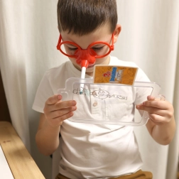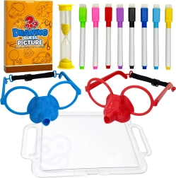 Genießen Sie ein Spiel, das großartig für die ganze Familie und verschiedene Altersgruppen ist. Setzen Sie die spezielle Brille auf und zeichnen Sie nur mit der Nase.
