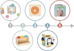 Die Spielzeuge sind farbenfroh, sicher und liegen gut in kleinen Händen. Durch die durchdachten Aktivitäten trainieren Kinder Fein- und Grobmotorik, Koordination, Farbwahrnehmung und räumliches Vorstellungsvermögen. Das Buch mit realen Fotografien unterstützt die Sprachentwicklung und das Körperbewusstsein.