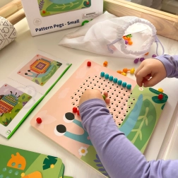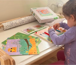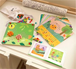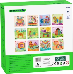 Dieses faszinierende Mosaik ist für Kinder ab 3 Jahren konzipiert und enthält 10 Platten mit Vorlagen und 222 bunte Stifte. Es beinhaltet auch einen Stoffbeutel zur Aufbewahrung aller Teile.