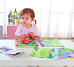 Das Holzmosaik mit bunten Stiften und fröhlichen Bildern bereitet Kindern viel Freude und fördert ihre kreative Entwicklung.