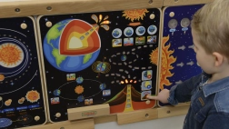 Durch bewegliche Elemente und Lichteffekte können Kinder leicht lernen über die äußere und innere Struktur der Erde.