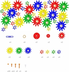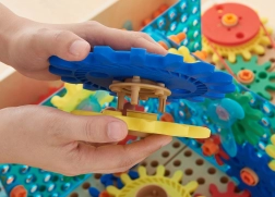 Das Set mit 198 Teilen eröffnet Experimente mit Übersetzungen, Rotation und Kraftübertragung. Bunte Zahnräder greifen sanft ineinander, Riemenscheiben mit Bändern und die Kette ermöglichen die Übertragung der Kraft, sodass Kinder die Prinzipien des STEM-Lernens anschaulich verstehen – von Ursache zu Wirkung.