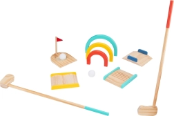 Das Holzsportspiel Golf von Tooky Toy ist ein klassisches Spiel für zwei Spieler und ideal für eine aktive Freizeitgestaltung. Dieses Spiel hilft, Konzentration, Reflexe, Geschicklichkeit und Genauigkeit zu entwickeln. Es besteht aus 100 % ungiftigem und wetterbeständigem Holz. Es ist für die ganze Familie geeignet und kann dank des einfach aufzubauenden Lochs sowohl im Garten als auch zu Hause gespielt werden.