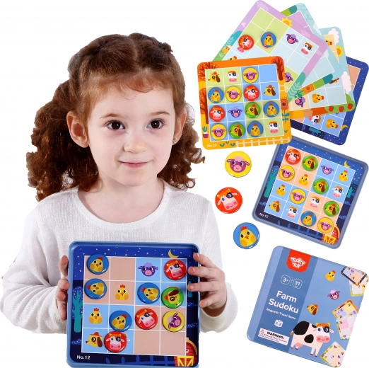 Entdecken Sie ein unterhaltsames und lehrreiches Spiel für Kinder – ein magnetisches Sudoku mit Bauernhofmotiv von TOOKY TOY. Bunte Tier-Chips, einfache, von Sudoku inspirierte Regeln und bis zu 30 verschiedene Aufgaben fördern logisches Denken, Konzentration und Tierkenntnisse. Dank des metallenen Reiseetuis ist das Spiel auch ideal für unterwegs.