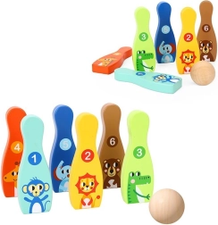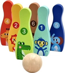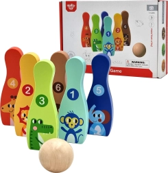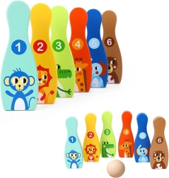 Holz-Kinderkegel mit Tieren 6 Stk. + Ball TOOKY TOY