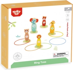 Das Set enthält 5 niedliche Holzziele in Tierform mit den Zahlen 1–5 sowie 5 farbige Wurfringe. Das Spiel ist schnell aufgebaut, leicht zu transportieren und ideal für Familienmomente, Kindergeburtstage und das freie Spiel allein. Sicheres, glatt verarbeitetes Holz und ungiftige Farben entsprechen der Philosophie der Marke TOOKY TOY – hochwertige und robuste Spielzeuge für den täglichen Gebrauch.